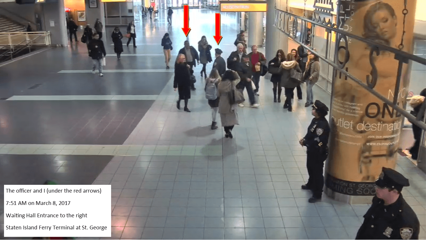 I was going to my office in Manhattan after a few weeks out of town on assignment. I parked my car at the New York Wheel Garage, took the shuttle bus, and then walked down the stairs with fellow passengers, entering the terminal shortly before 8 am.
