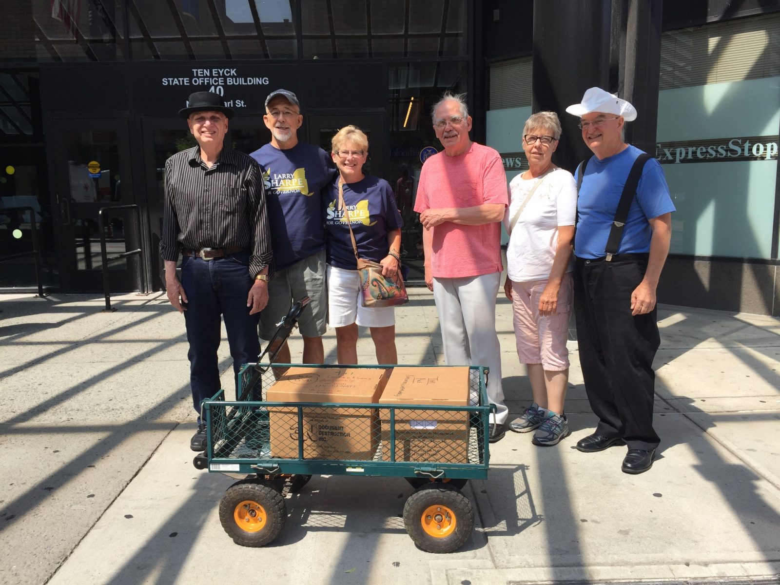 At 1:30 p.m. this afternoon (Tuesday, August 21, 2018) the Libertarian Party of New York filed petitions at the New York State Board of Elections in Albany to place Larry Sharpe on the ballot this November.
