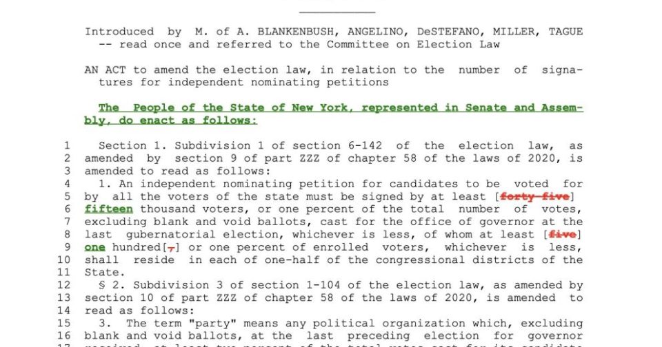 This new bill has the same co-sponsors as the bill from the last term, with the exception of former Assemblyman John Salka, who is no longer in office. I urge everyone to reach out to their representatives in the New York State Legislature and urge they support this bill for voter choice.